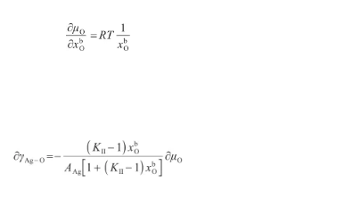 液態Ag-O系表面張力和表面過剩量計算、氧氣壓力和溫度的預測模型——模型(二)