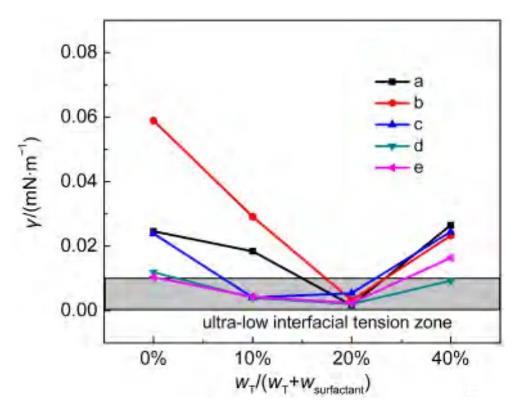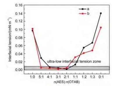 烷基季銨鹽CTAB/AES/保護劑T三組分復配體系在克拉瑪依實際油水體系中獲得超低界面張力