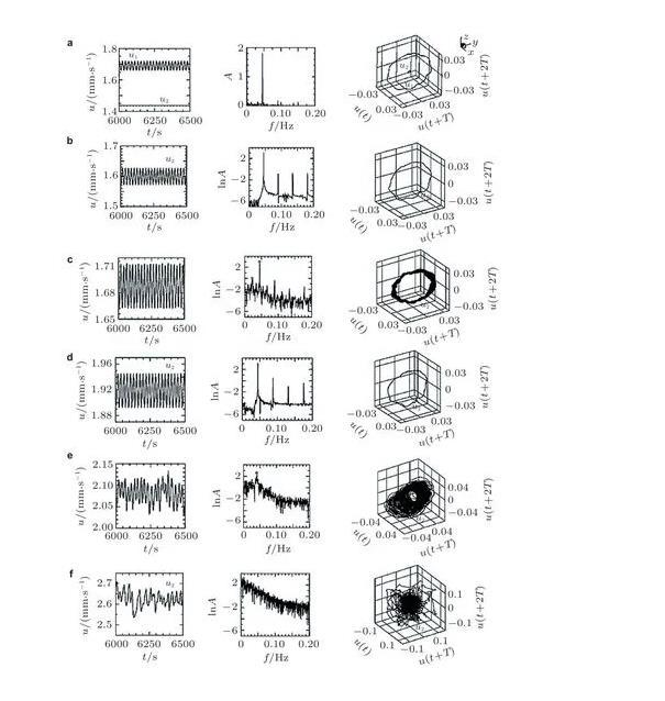 (2)目前關(guān)于液層界面張力梯度驅(qū)動對流向湍流的超臨界轉(zhuǎn)捩在數(shù)值方法上主要有流動時序數(shù)據(jù)的分析和分岔問題的數(shù)值算法。流動宏觀量的時序數(shù)據(jù)來自實驗結(jié)果或者直接數(shù)值模擬,對于后者,需要對于不同參數(shù)分別進行數(shù)值模擬,再通過時間序列頻譜及其混沌特性的定量計算分析流動轉(zhuǎn)捩規(guī)律,即在大量的離散的數(shù)據(jù)序列中尋找分岔點,故此過程比較繁瑣。而通過構(gòu)造分岔方程對分岔進行數(shù)值計算的方法雖然可以一步到位,但是在選取分岔方程,解高維線性、非線性方程等過程中均需要根據(jù)具體的流動模型進行調(diào)整,具有一定難度,且對于更加復(fù)雜的流動模式需要更大的計算量,用此算法也無法直接計算得到混沌解。上述兩種方法各有優(yōu)缺點,目前在轉(zhuǎn)捩過程的數(shù)值研究中較為常用的仍是在不同參數(shù)下進行直接數(shù)值模擬,而后對大量數(shù)據(jù)進行頻譜分析,識別分岔點;在直接對分岔進行數(shù)值計算的研究中,也常常需要通過直接數(shù)值模擬來驗證分岔得到的解的可靠性與準(zhǔn)確性,在今后的研究中可考慮進一步將兩種方法結(jié)合運用,互相補充、驗證。