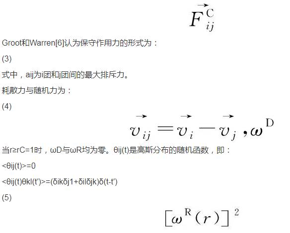 耗散力與隨機力為:當r≥rC=1時,ωD與ωR均為零。θij(t)是高斯分布的隨機函數,即:
