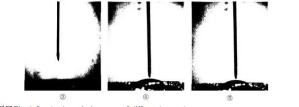 使用JGW-360A接觸角測定儀對表面活性劑溶液和3種礦石表面接觸角的測量;采用濕潤性能較好的SDBS溶液配制成8種不同表面張力的水溶液,并測定出接觸角,如圖4所示(選取礦樣a不同表面張力②④⑤時接觸角測量示意圖)。