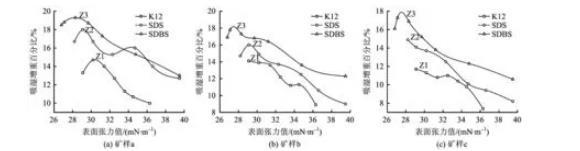 > 油田用酸化增產增注劑成分配方比例變動對油水的界面張力的影響