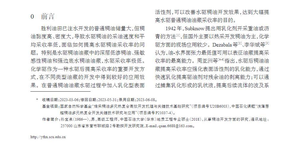 研究結(jié)果為水驅(qū)稠油開(kāi)發(fā)用驅(qū)油劑的研發(fā)提供參考,為大幅提高水驅(qū)普通稠油采收率奠定基礎(chǔ)。