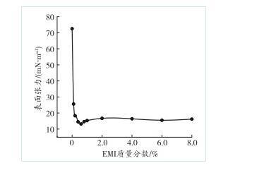 2.1 EMI質(zhì)量分?jǐn)?shù)對(duì)表面張力的影響