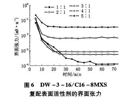 圖6 DW-3-16/C16-8MXS復配表面活性劑的界面張力
