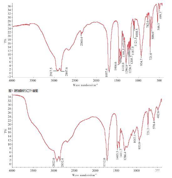 由硬脂酸合成的甜菜堿型表面活性劑及其中間產物的檢驗是通過紅外譜圖進行的,具體(見圖1~圖3)。