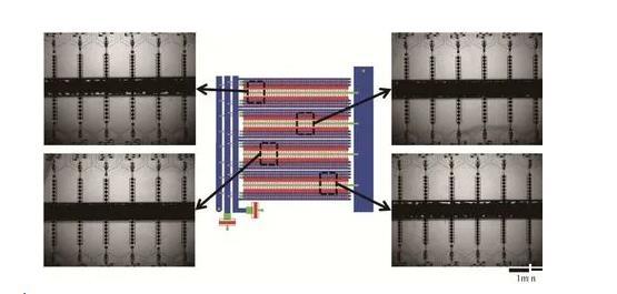 目前制約微流控技術實際應用的重要因素是其處理通量低,無法滿足實際工業生產的需求。以上述微通道中萃取稀土離子為例,該過程連續相的流量僅為4mL/min,顯然不能滿足大量浸礦廢水處理的需求。目前關于微萃取設備的放大主要有兩種途徑。其中,微通道并行放大是大規模生產乳液和氣泡的一種常用可靠途徑。Jeong和Chen等設計了一種并行聚焦流微通道用來制備氣液液雙乳液,實現了在10cm×10cm的PDMS上并行了400個聚焦流微通道(圖7)。雙乳液的生產通量可達3L/h,可在1h內制備1011個高度單分散的中空液滴。利用該設備進行稀土離子的萃取結果表明相比于單一微通道結構,該設備的處理通量提高了10倍,且稀土離子的萃取率可在數秒內提高至98%以上。本文作者所在的研究團隊發明的膜分散微萃取設備同樣可以實現微通道萃取設備的有效放大,對于膜分散微萃取設備,其分散介質為含有眾多規則排列微孔的不銹鋼薄膜,每個微孔相當于一個微通道,其處理量可提高到200mL/min;該團隊進一步發明多通道膜分散微結構設備,已經成功應用到萬噸級/年處理量的氣體吸收和液液萃取過程,為稀土萃取回收過程放大提供了堅實的基礎。從氣液液微分散萃取過程的放大研究進展來看,處理通量已經不再成為制約其發展的問題,多通道膜分散微萃取設備有望實現高通量快速富集回收稀土離子的目標。
