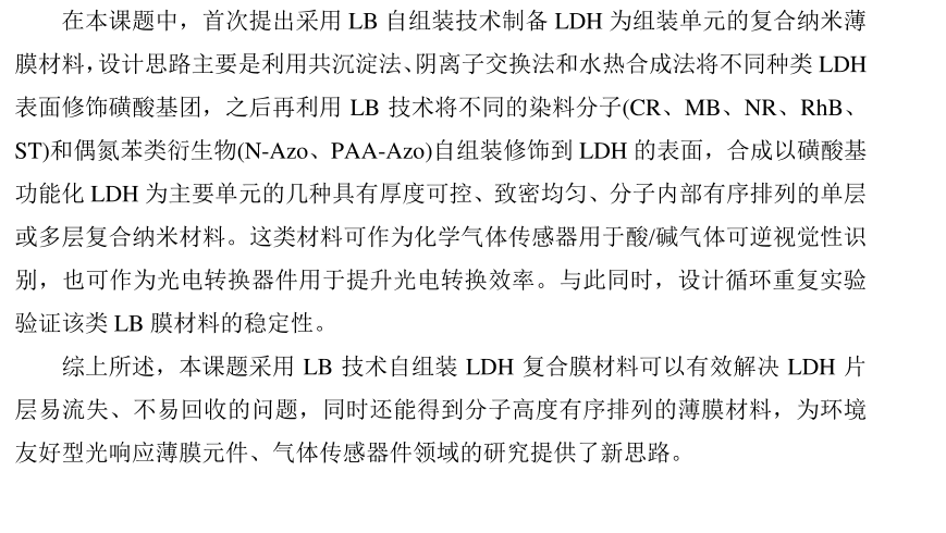 LDH/染料復(fù)合LB膜組裝過(guò)程的多樣化和化學(xué)氣體傳感機(jī)理研究
