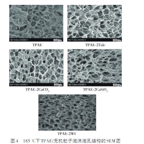 圖4 185℃下TPAE/無機粒子泡沫泡孔結構的SEM圖