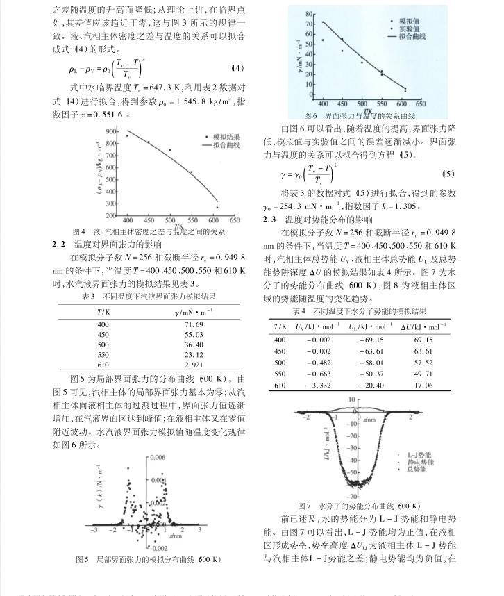 溫度、截斷半徑、模擬分子數(shù)對水汽液界面特性的影響規(guī)律(二)