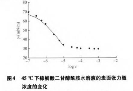 圖4為45℃下棕櫚酸二甘醇酰胺的γ-logc曲線。