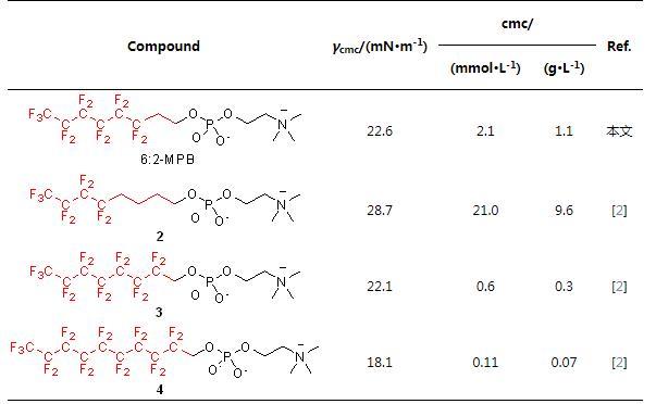 表3磷酸膽堿氟表面活性劑的表面活性數(shù)據(jù)