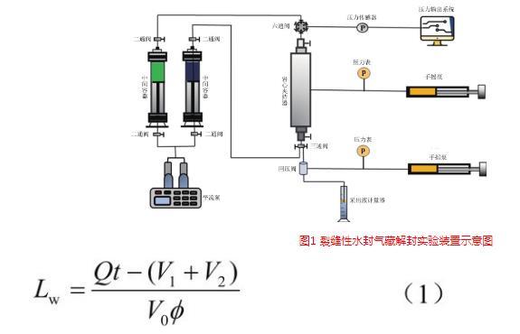 3)氣體增壓注入。將巖心夾持器水平放置,利用注入泵以恒定速度向入口端注入氣體,以增加巖心中水封段塞兩端壓差,直至出口端氣體突破則停止加壓,此時巖心兩端壓差為解封壓差。另外,可通過改變出口端回壓來模擬不同裂縫壓力,通過改變巖心滲透率、水封段塞長度和巖心出口端回壓,研究不同因素對解封壓差的影響規律。