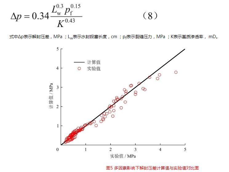 式中Δp表示解封壓差,MPa;Lw表示水封段塞長度,cm;pf表示裂縫壓力,MPa;K表示基質(zhì)滲透率,mD。