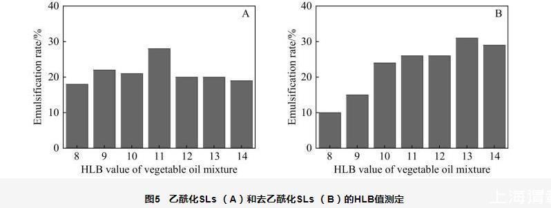 圖5乙酰化SLs(A)和去乙酰化SLs(B)的HLB值測定