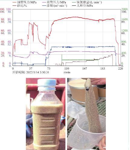 圖8 DK**-**24井第4段壓裂施工曲線及攜砂液展示