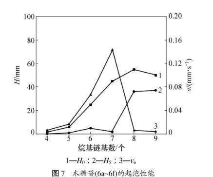 2.5烷基-β-D-吡喃木糖苷的起泡力及泡沫穩(wěn)定性