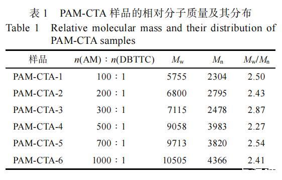 表1 PAM-CTA樣品的相對分子質量及其分布