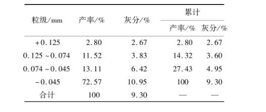 依據(jù)GB/T447—2008《煤炭篩分試驗(yàn)方法》對(duì)煤樣進(jìn)行小篩分試驗(yàn),浮選精煤樣品粒度組成見(jiàn)表2。由表2可以看出,煤樣中細(xì)粒物料含量非常高,其中-0.045 mm粒級(jí)產(chǎn)率高達(dá)72.57%,而+0.125 mm粒級(jí)產(chǎn)率僅有2.8%。該煤樣粒度細(xì),比表面積大,脫水時(shí)煤粒之間由于毛細(xì)作用存在大量毛細(xì)水,而且煤表面還存在大量的吸附水,難以通過(guò)機(jī)械力進(jìn)行有效脫除。此外,樣品中細(xì)粒含量高、粗粒含量少也會(huì)造成脫水過(guò)程中顆粒之間供水穿透的孔隙較少,脫水阻力較大。