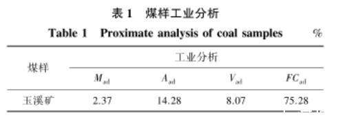 1)首先將取自玉溪煤礦煤樣進行破碎,篩選出60~80目的顆粒煤6份。