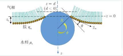 顆粒的水動力學(xué)阻力系數(shù)取決于顆粒在水相中的浸沒程度(圖5,以顆粒暴露在空氣中的高度d表示)。顆粒的平衡位置取決于重力、浮力及膜施加的表面張力。重力G為: