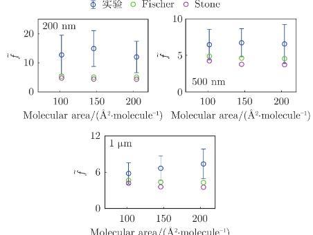 圖6不同密度LE相膜上顆粒無量綱阻力系數(shù)實驗值與理論值的對比