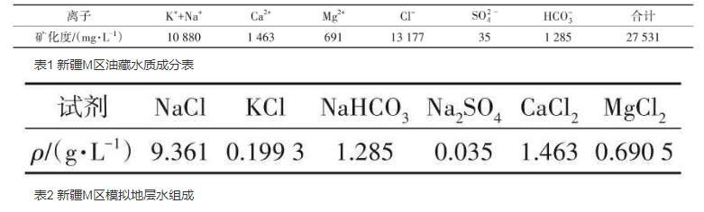 實驗用水為新疆M區(qū)油藏模擬地層水,M區(qū)