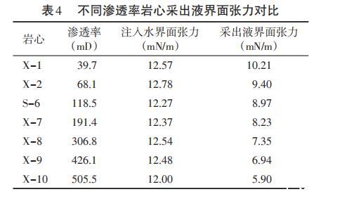 表4不同滲透率巖心采出液界面張力對(duì)比