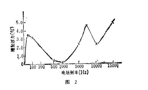 浮力和電場頻率之間關系曲線見圖2。