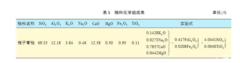 龍泉梅子青釉的釉料配方(質(zhì)量分?jǐn)?shù))為: 西源瓷土45%、黃壇瓷土20%、獅子籠紫金土3%、石灰石22%、石英10%。該釉配方原料取自龍泉本地瓷土,適用性廣、穩(wěn)定性好、燒成溫度范圍寬,其化學(xué)組成見(jiàn)表1。