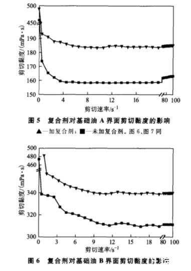 圖6復合劑對基礎(chǔ)油B界面剪切黏度的影響