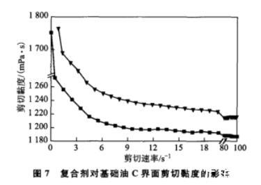 圖7復合劑對基礎(chǔ)油C界面剪切黏度的影響