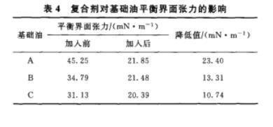 復合劑對不同基礎(chǔ)油界面張力的影響差異