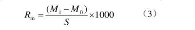 采用浸漬法并稍作改進。藥液配制方法同1.2.2節(jié)。采集蘋果成熟葉片,避開邊緣及褶皺處將葉片打成直徑為3.5 cm的圓形平整葉碟,計算葉碟面積(S)為9.62 cm2。浸漬前,用電子天平讀取葉碟初始質(zhì)量(M0,g),用鑷子夾持葉碟完全浸入藥液3 s后取出,垂直懸置待不再有液滴滴下時讀取載液后質(zhì)量(M1,g),根據(jù)公式(3)計算最大持留量(Rm)(mg/cm2),每處理重復10次,結(jié)果取平均值。
