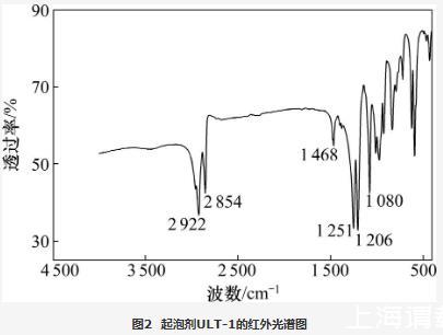 2)利用紅外光譜、質譜進行新型起泡劑ULT-1分子結構表征,起泡劑ULT-1分子中具有硫酸酯鍵、醚鍵、碳氫鍵等官能團,與分子結構設計一致。