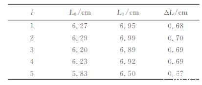 4)記錄水膜剛好被拉破時標尺的讀數L?,計算得到彈簧的伸長量ΔL,實驗結果如表1所示。