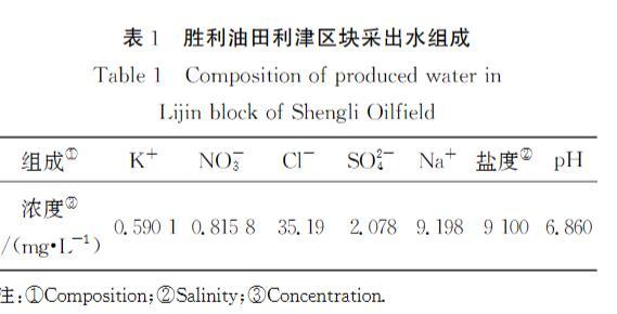實驗試劑:葡萄糖、檸檬酸鈉、酵母粉、KH2PO4、(NH4)2SO4、MgSO4·7H2O、乙酸乙酯為分析純,購自國藥集團化學(xué)試劑有限公司;正己烷為優(yōu)級純,購自Merck公司;二氯甲烷為優(yōu)級純,購自B&J公司;正構(gòu)烷烴混合標準:C8—C40包含異構(gòu)烷烴姥鮫烷和植烷,購自Accustandard公司;層析硅膠(100~200目)及硅膠層析板購自青島海洋化工廠;原油采集自中國石化勝利油田有限公司利津區(qū)塊;降解實驗用水根據(jù)勝利油田利津區(qū)塊采出水組成配置(見表1),采出水中pH、鹽度用多參數(shù)儀(Manta3.0,Eureka,美國)測定,K+、NO-3、Cl-、SO2-4、Na+等離子依據(jù)SY/T5523—2016《油田水分析方法》中給出的檢測方法檢測。