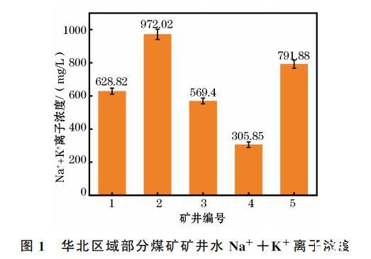 根據(jù)調(diào)研結(jié)果配制9組溶液,包括8組Na+、K+離子濃度不同的礦井水和1組純水,溶液配比見(jiàn)表1。配制溶液時(shí),取適量去離子水,向其中投加CaCl2、MgCl2、Ca(HCO3)2 控制礦井水硬度,向其中投加NaCl、HCl和NaOH控制礦井水的pH為7.5,向水溶液添加其他必需微量離子和雜質(zhì),靜置2 h待用。