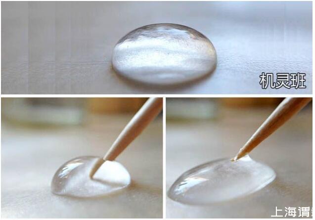 引申實(shí)驗(yàn),在水滴上放置1滴油,把它們混合在一起后,再用干凈的牙簽戳混合后的液滴,看看此時會發(fā)生什么現(xiàn)象。然后用蘸有洗潔精的牙簽戳混合后的液滴,看看又會出現(xiàn)什么現(xiàn)象。