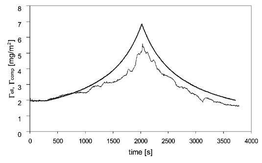 圖8代表性壓縮-吸附b-乳球蛋白(c=0.01 wt%)的膨脹實(shí)驗(yàn),壓縮低于每個分子的面積。 通過擴(kuò)散量和壓縮量(Gcomp)和橢偏儀(Gell)測量的預(yù)期吸附量。