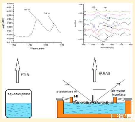 本研究為HI-Langmuir單層膜的光學(xué)性質(zhì)提供了新的數(shù)據(jù)。 紫外線 ? 空氣中的可見光 ? 水界面與表面壓力相關(guān) ? 面積等溫線曲線。 根據(jù)HI和FITC標記的HI-Langmuir單層的布儒斯特角和表觀熒光顯微鏡,未觀察到二維結(jié)構(gòu)域的形成。 通過IRRAS測量,人們觀察到蛋白質(zhì)在2-D中保持α-螺旋構(gòu)象,知道IRRAS方法允許檢測酰胺I和酰胺II帶,這與蛋白質(zhì)樣品中的α-螺旋和β-折疊相關(guān)。19,20