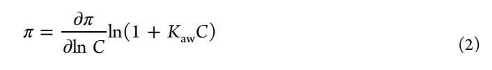 表面活性測定。化合物在DMSO中連續稀釋超過12種不同濃度,并在pH值為6.5的0.05 M磷酸鹽緩沖液中添加至最終10%的DMSO含量。最終化合物濃度默認范圍為10 nM至10 mM。在第二次實驗中,對于達到溶解度極限或需要對相關濃度范圍進行解析以確定最佳參數的情況,定義了替代濃度范圍。樣品靜置10分鐘,以便在液體中平衡?空中接口。表面壓力分布在張力計(MultiPi WS1,Kibron Inc.,芬蘭赫爾辛基)上進行,通過之前的測量(72.8 mN/m)對50μL等份樣品進行校準。通過對生成的等溫線進行曲線擬合確定表面活性參數,并根據經典的空氣吉布斯熱力學理論進行計算?水里,臉上。主要導出參數如下。(i)考:空氣?水分配系數,來自等式2