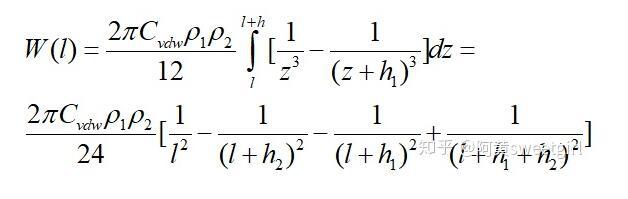 同樣,若取l為兩相界面處分子間的距離d12,且兩半無限體為兩種不同的物質時,則互作用勢變為