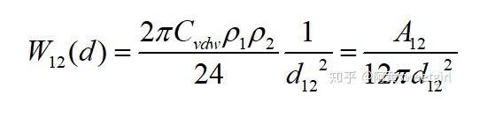 而兩分子間的Van der Waals力的大小和表示為: