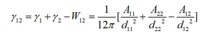 式中γ12為界面張力(自由能)。則界面張力/自由能可表示為: