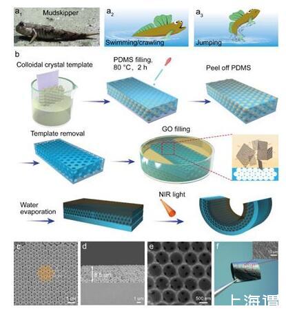 彈涂魚具有陸地爬行、水中游泳、泥中跳躍的獨特特征,是一種具有多場景適應(yīng)能力和多功能驅(qū)動行為的魚類。受彈涂魚啟發(fā),中國科學(xué)院蘭州化學(xué)物理研究所固體潤滑國家重點實驗室表面與界面研究團隊開發(fā)了一種能對各種環(huán)境做出響應(yīng)的智能光驅(qū)動器。