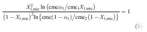 其中f1、f2和X1、mic分別是離子組分(即HTPB)的離子、非離子和膠束組成的活度系數。X1、mic可以從以下等式迭代計算: