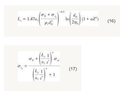 式中,η和η0分別為射流表面波動振幅和初始振幅,m。假設表面波振幅發(fā)展至射流半徑時,射流發(fā)生破裂。因此,射流破裂長度可以表示為[9]: