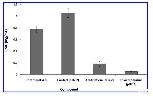 在本報告中,我們描述了一種用于測定CMC的替代方法,因此與langmuir平衡方法相一致,藥物的磷脂生成潛力。我們使用熒光染料探針通過短鏈脂質的CMC變化來測量藥物脂質復合物的形成。一些熒光染料探針長期以來一直用于測定CMC,28,29包括脂質30,31,這是基于影響染料探針熒光發射的膠束形成后的微環境變化。所需的儀器是大多數生物學和生物化學實驗室都有的熒光讀板儀。