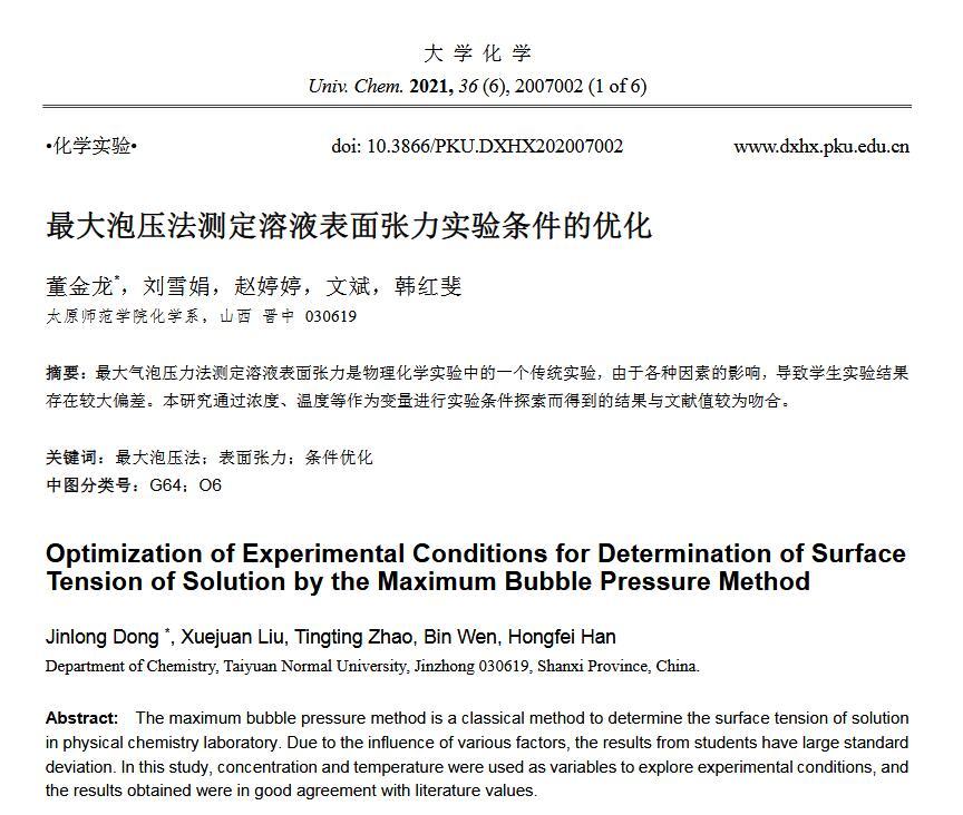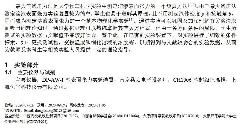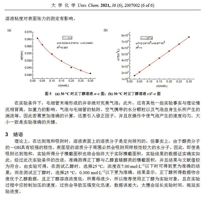 > 最大泡壓法測(cè)定溶液表面張力實(shí)驗(yàn)條件的優(yōu)化
